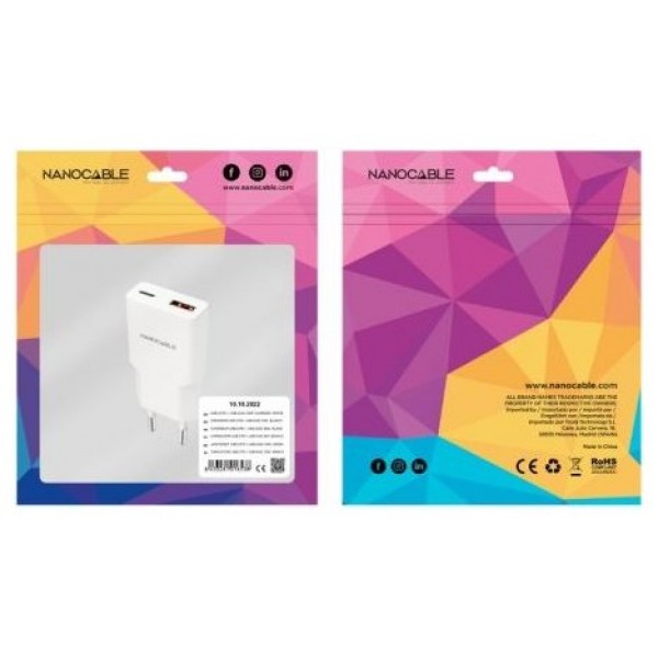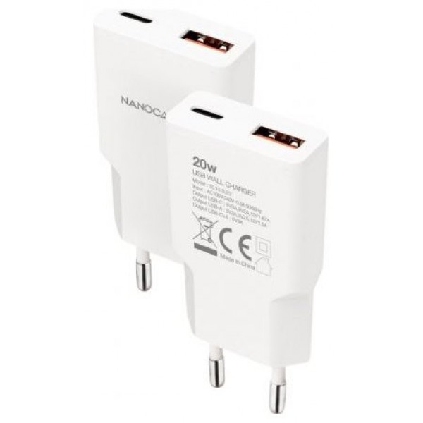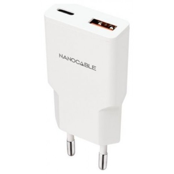 Nanocable Cargador USB-C/PD + USB-A/QC 20W Blanco