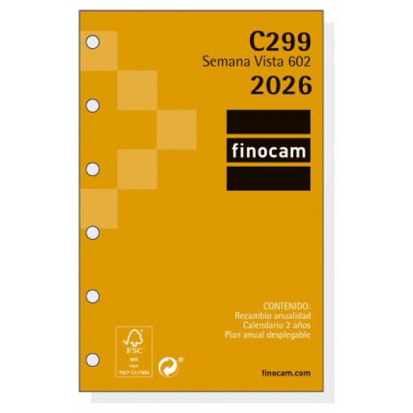 RECAMBIO ANUAL 2026 C299 CLASSIC602 73X114MM SEMANA VISTA HORIZONTAL FINOCAM 201240026 (Espera 4 dias)