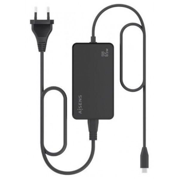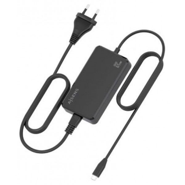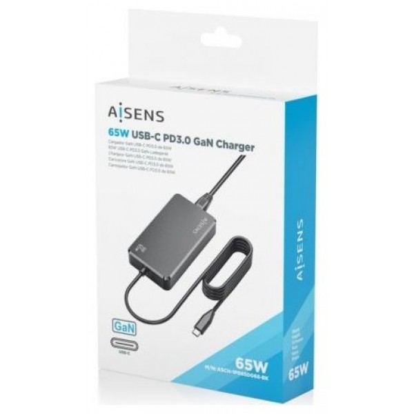 AISENS - CARGADOR DE SOBREMESA GaN 65W PD3.0 1XUSB-C 1.8M, NEGRO