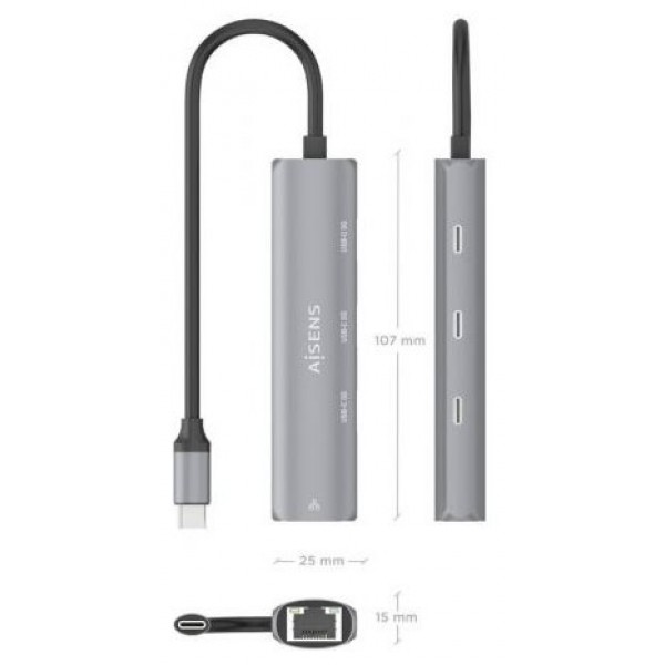 Hub USB Tipo-C Aisens ASUC-4P041-GR