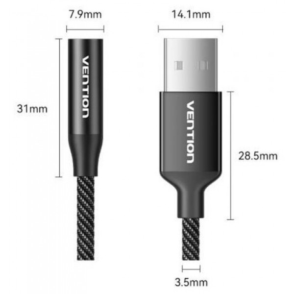 Cable Conversor Audio Vention BGABF/ USB Tipo-C Macho - Jack 3.5 Macho/ 1m/ NegroCable Conversor Aud..