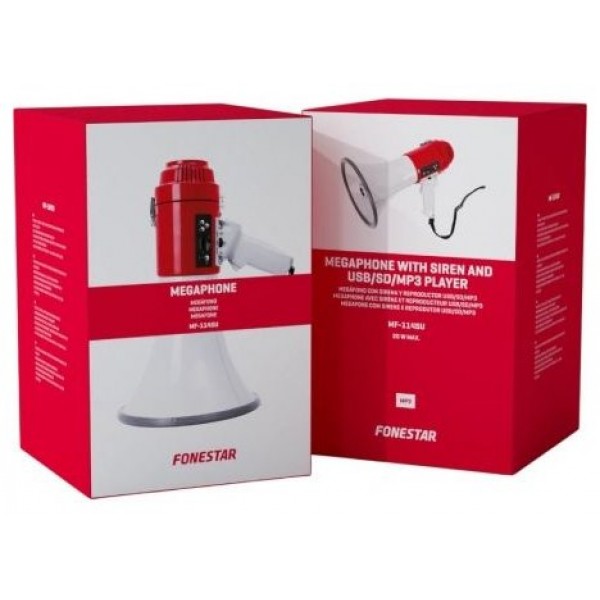 Megáfono con sirena Fonestar MF-114SU/ 25W/ USB/ SD/ a Pilas/ a 12V CCSistemas portátiles Megáfonos ..