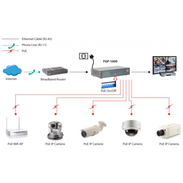 SWITCH NO GESTIONABLE LEVEL ONE FGP-1000 10P 8xPoE