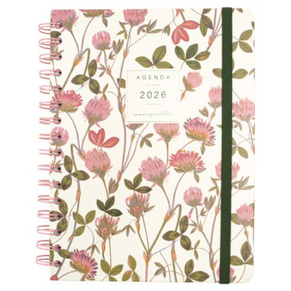 Agenda de tapa dura de cartón forrado con peliculado mate antirrayaduras. Con espiral doble, goma elástica y esquinas microperforadas para localizar rápidamente el día/semana en curso. Esta agenda se ha creado en colaboración con la diseñadora e ilustradora Moniquilla, obteniendo unas agendas bonitas y funcionales. Con una estética limpia y minimalista, contiene información de interés en la anualidad y otros contenidos extra. Además, dispone de dos marcapáginas y de adhesivos temáticos orientados a la organización personal. Formato similar a DIN A5 con las ventajas de una agenda portable y una de sobremesa. Duración: Enero 2026 - Diciembre 2026 (12 meses). Interior: Semana Vista Horizontal. Visión de la semana completa en horizontal que permite la escritura natural. Con planificación mensual cuadriculada al inicio de cada mes. Con información de los festivos de España. La anualidad de la agenda incluye: festivos nacionales, cambios de estación y días señalados. Contiene planificación mensual cuadriculada con las fases lunares intercalada en la anualidad. La agenda también dispone de otros contenidos extra: datos personales, calendarios, planificación anual en columnas, horarios, objetivos personales, planes, maleta, apartado para libros/películas/series/pódcast, hojas para anotaciones y tareas, contactos, adhesivos temáticos y dos marcapáginas. Idioma del artículo: español. Formato: E10 - 155x212 mm. Tapas de cartón forrado con peliculado mate antirrayaduras. Espiral doble metálica. Papel. 80 g/m². Papel FSC®.