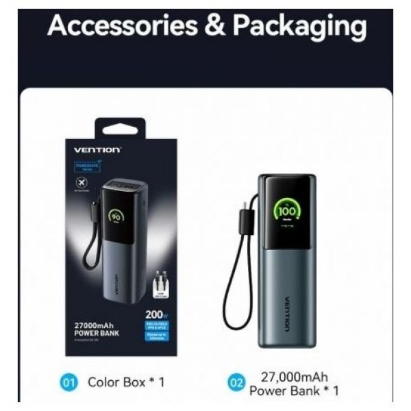 Powerbank 20000mAh Vention FHPW0/ 22.5W/ Blanca/ Incluye Cable USB TIpo-C y Lightning Especificac..