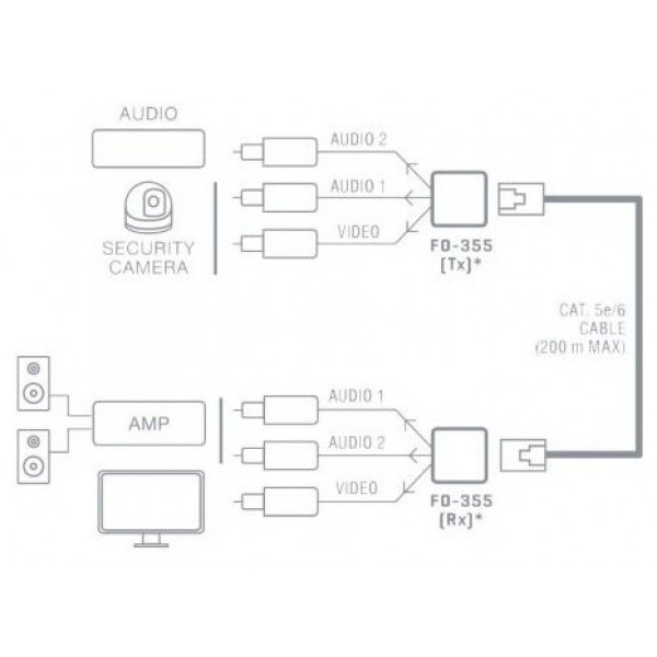Transmite señal de audio y vídeo a grandes distancias (hasta 200 m), sin necesidad de alimentación, a través de un único cable Cat 5e/6.
