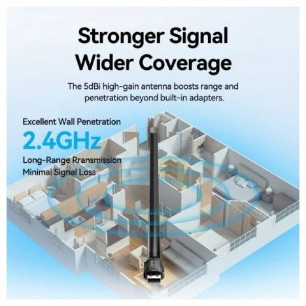Vention Adaptador USB Wi-Fi AX300 de banda única con antena de alta ganancia, color negro