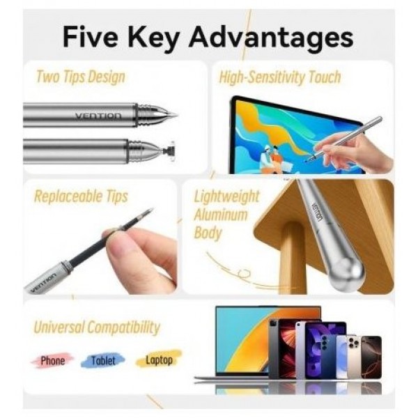 Lápiz óptico Vention 2 en 1 de aleación de aluminio gris