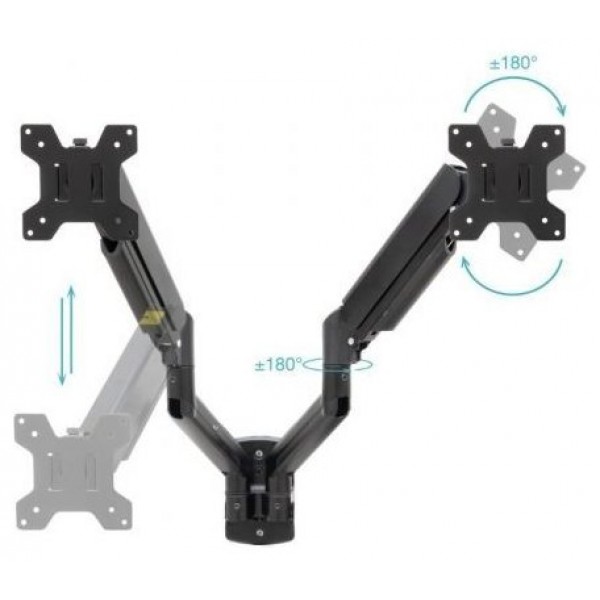Soporte de Mesa Gaming con Contrapeso para 2 Monitores Aisens DT38TSR-345/ Giratorio/ Inclinable/ ha..