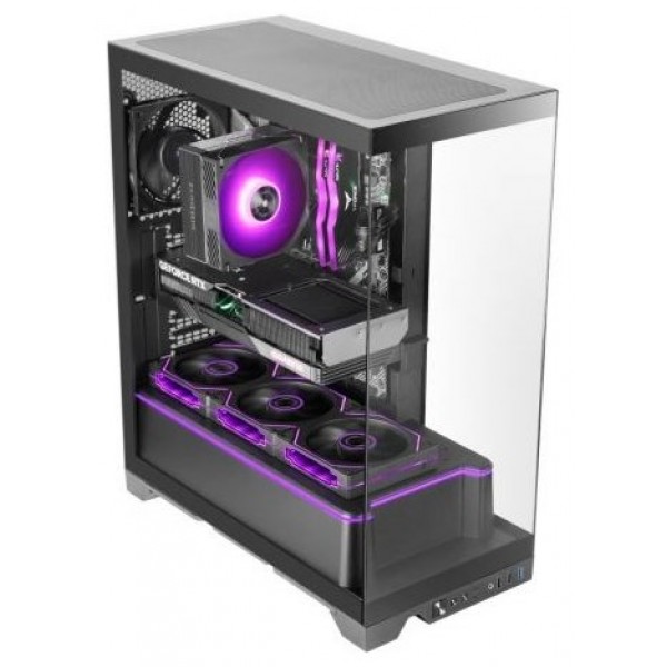 La MC-PRISMA ofrece una experiencia única al integrar tres paneles de cristal templado continuo sin marcos. Este diseño envolvente permite contemplar el interior desde múltiples ángulos, realzando cada componente con una nitidez y elegancia incomparables. Perfecta para configuraciones ARGB, convierte tu equipo en un espectáculo visual que refleja la personalidad y creatividad de cada usuario.