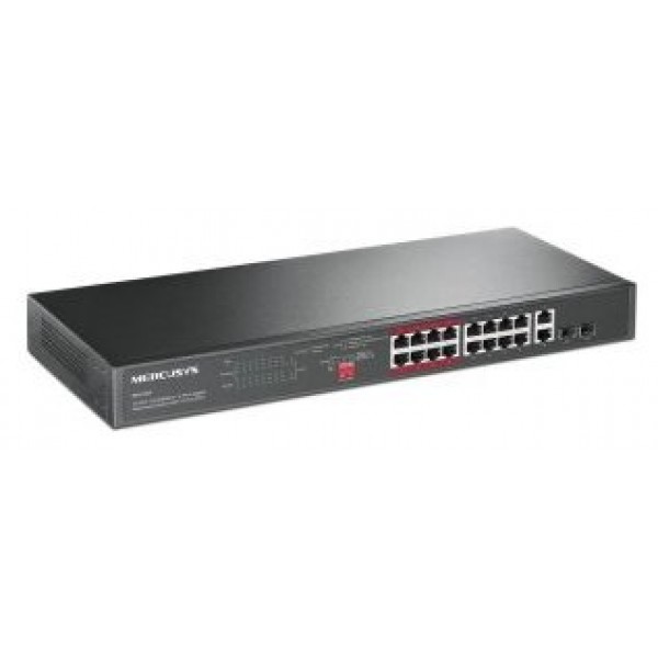 SWITCH NO GESTIONABLE MERCUSYS MS118CP 18P 16xRJ45 100Mbps PoE+ 2x1Gbps 2xSFP 1Gbps ENRACKABLE