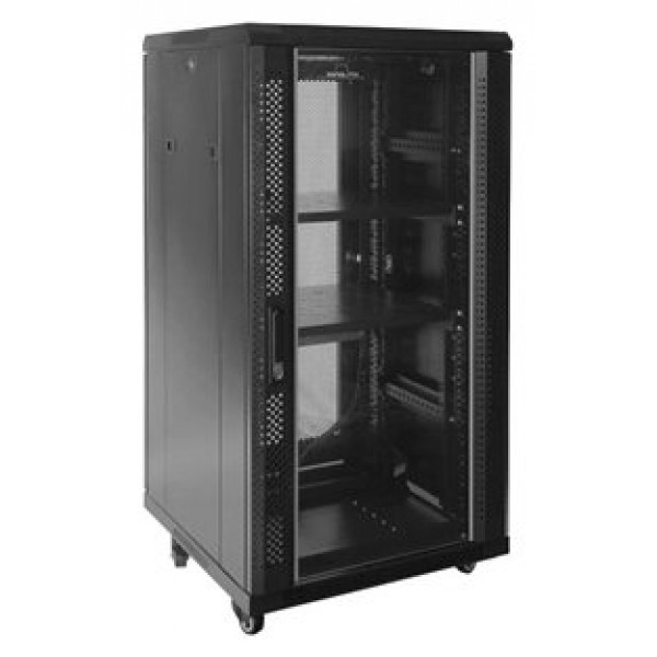 Características | - Altura: 22U - Armario rack con ancho de perfil estándar de 19 - Puerta delantera de cristal - Puerta trasera perforada - Apertura de seguridad Handylock en puerta frontal - Llave en puerta posterior - Estructura básica totalmente desmontable - Techo y suelo con entradas de cables pretroqueladas y ranuras de ventilación - Soportes o pies regulables en altura - Perfiles de rack numerados - Perfiles desplazables en profundidad - Paneles laterales desmontables de fácil apertura con cierre - Espacio accesible por puerta frontal, trasera y laterales - Acabados para evitar electro-estática y entrada de polvo - Cumple con las normativas medioambientales CE y RoHS -Tratamiento: desengrasado, limpiado con ácido y pintura fosfórica anti-óxido. - Grado de Protección: IP20 (protección contra la entrada de polvo) - Capacidad de carga: 800 Kg (sobre pies) y 400 Kg (sobre ruedas) - Grosor de acero: Carriles 2mm, ángulos 1,5mm resto 1,2mm Dimensiones y peso - 600 x 800 x 1166 mm - 73 kg Contiene - 4 ruedas con freno - Tornillería de montaje - Pies regulables en altura - Juego de llaves para cerraduras incluido |