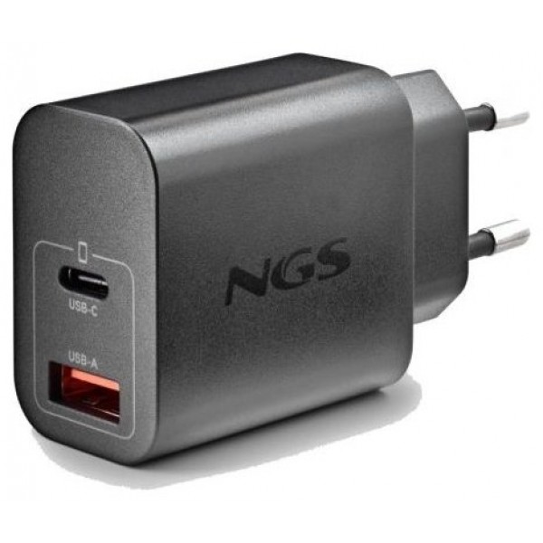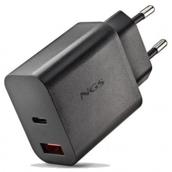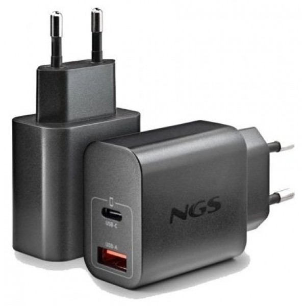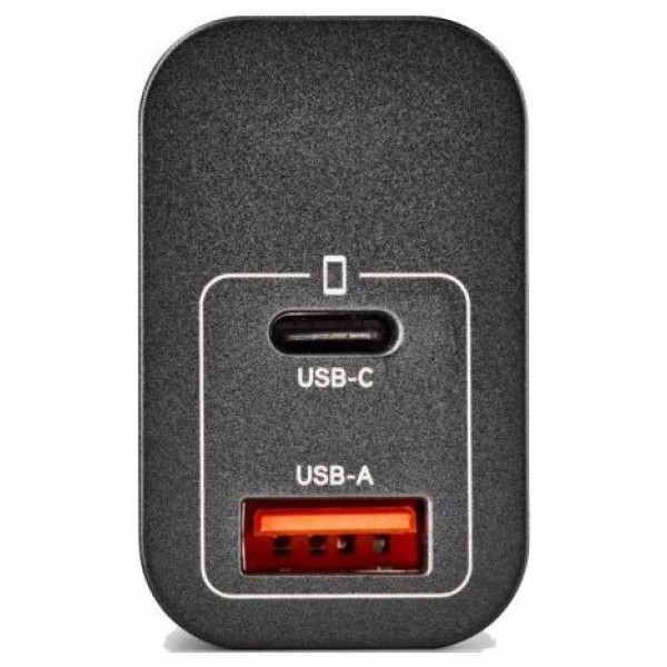 - Cargador GaN de pared con una salida USB-C (PD & PPS) y una salida USB-A QC 3.0 (Quick charge) de hasta 30W de potencia máxima para cargar dispositivos de manera rápida.