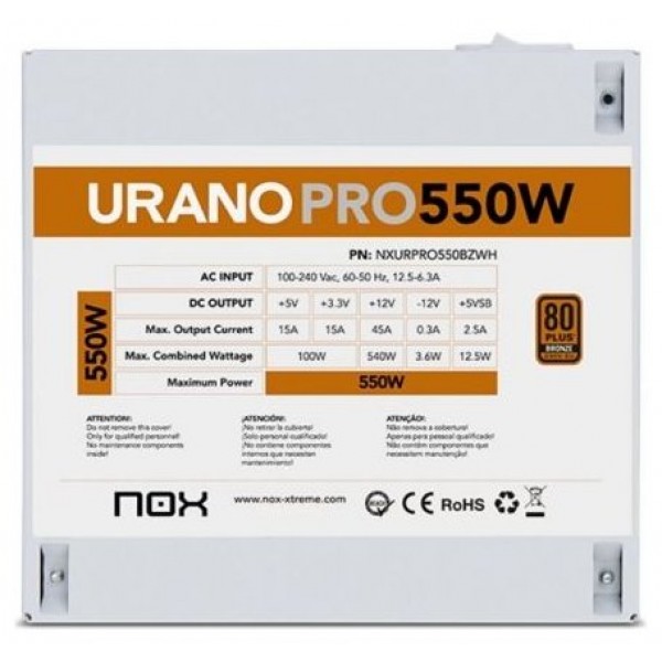 NOX Fuente ATX Urano PRO 550W Bronze Blanco