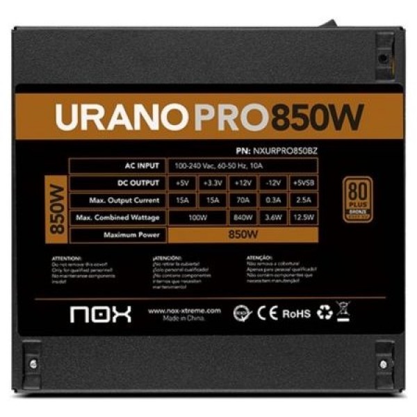 FUENTE ALIMENTACION 850W NOX URANO PRO PFC-ACTIVO (Espera 4 dias)