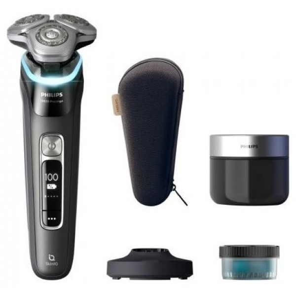 Philips i9000 Prestige, con sistema de afeitado Levanta y Corta de triple acción y cabezal de precisión de 360° compacto flexible; corta el vello al nivel de la piel, incluso en las zonas difíciles. Además, gracias a la IA, SkinIQ detecta, guía y se adapta para brindar un confort inteligente para la piel.