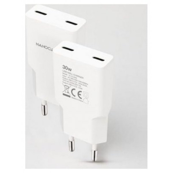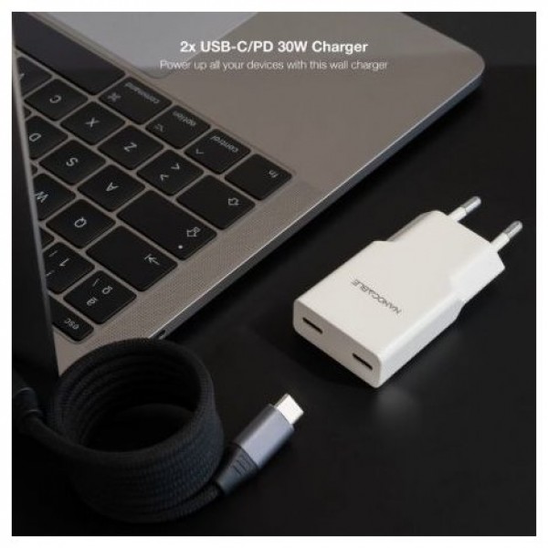 Cargador 2xUSB-C/PD 30W, Blanco