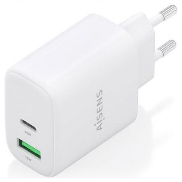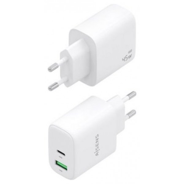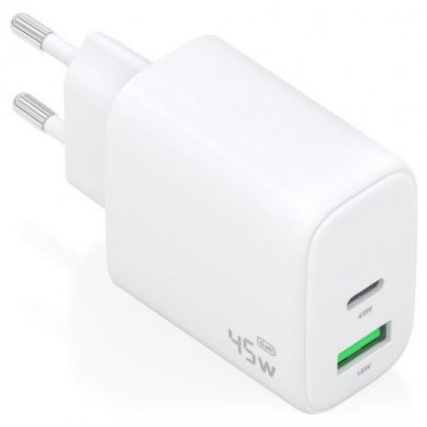 A110-0971 – Cargador GaN 45W, 1xUSB-C PD3.0 QC4.0, 1xUSB-A QC3.0, Blanco