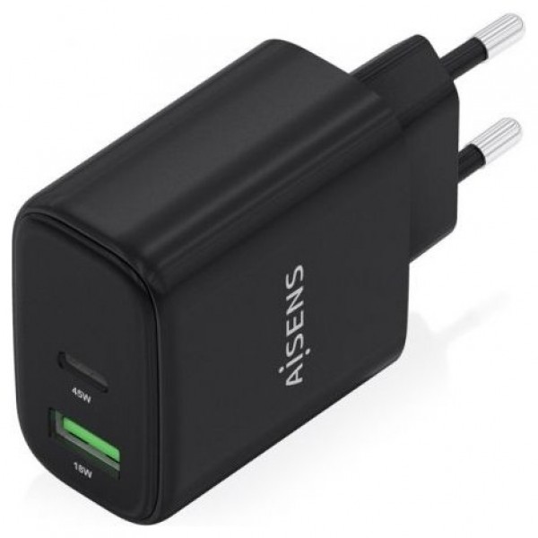 Cargador de Pared Aisens A110-0755/ 1xUSB Tipo-C/ 1xUSB/ 20WCargador USB-C 20W para cargar portátile..