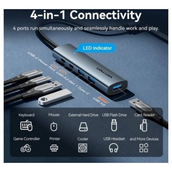 Vention HUB USB-A 3.2 a USB-C 3.2Gen1/ USB3.0x3USB-C 0.15m TGXHB Aluminio